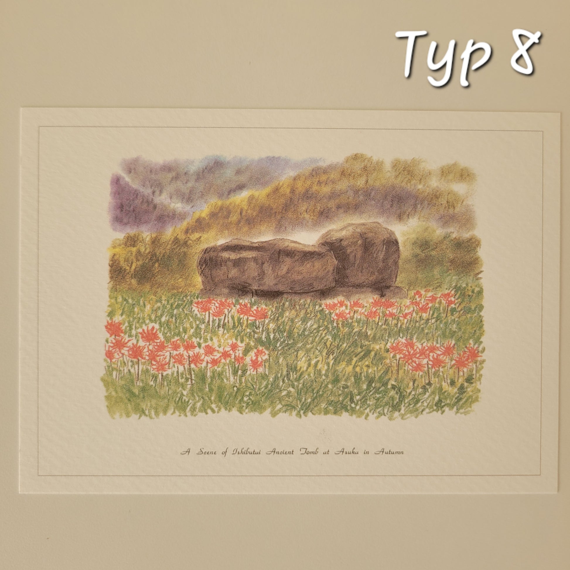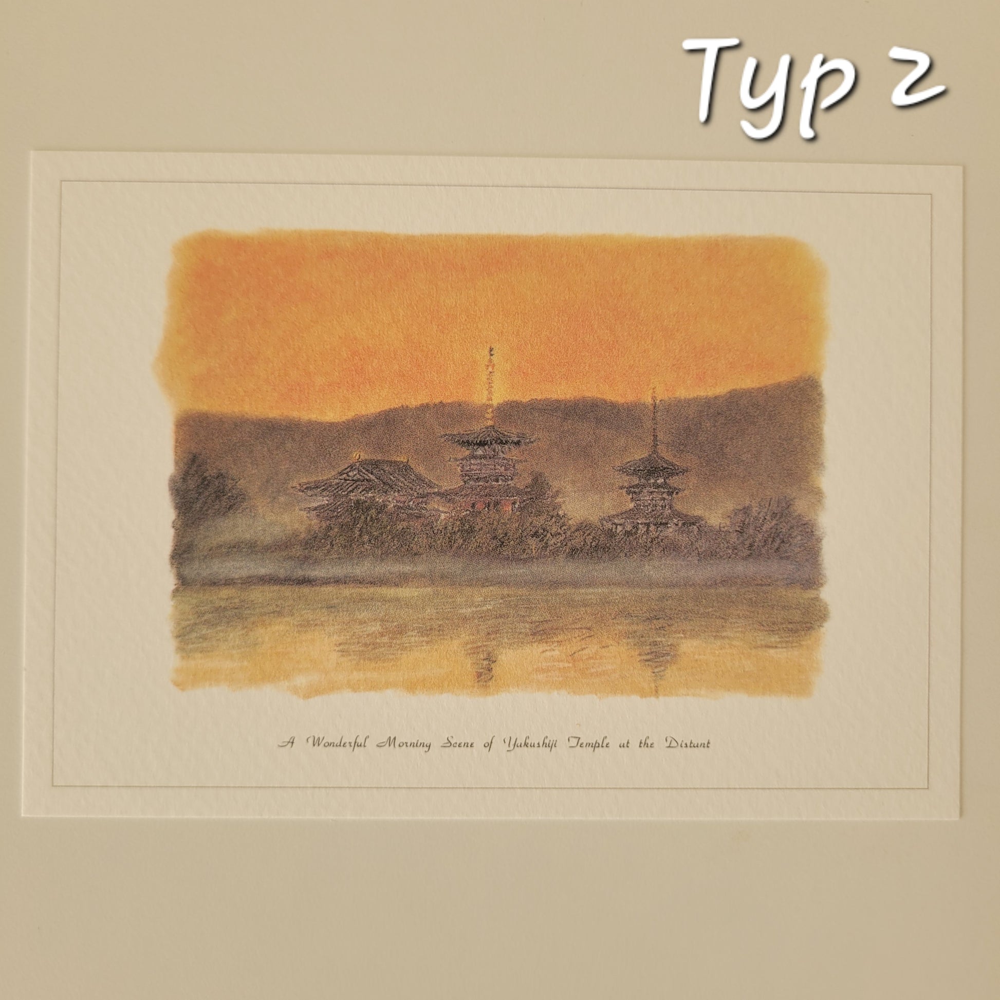 Pocztówki z serii Romantic Nara, przedstawiające krajobrazy, zabytki, oraz tradycje z Prefektury Nara, znanej z jelonków w Nara Park. Każda pocztówka opatrzona jest piękną pamiątkową pieczęcią z Muzeum Etnografii w Expo 90' Commemorative Park w Osace.
