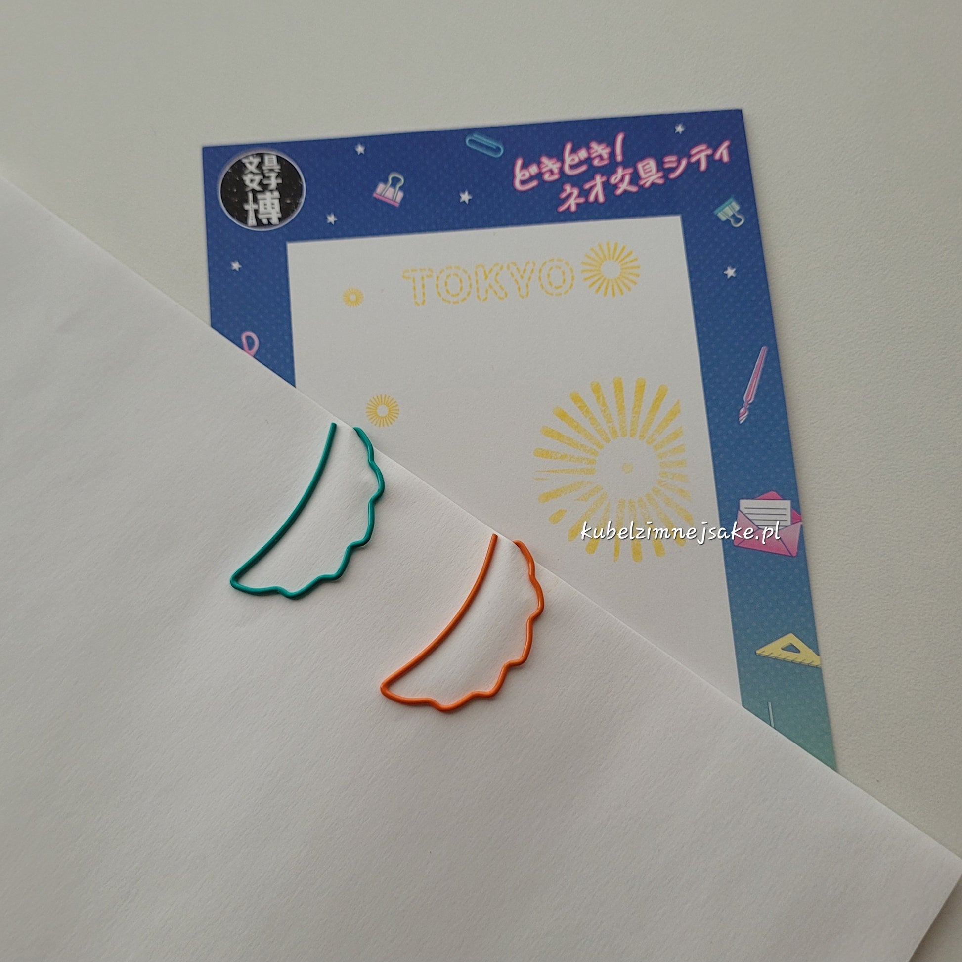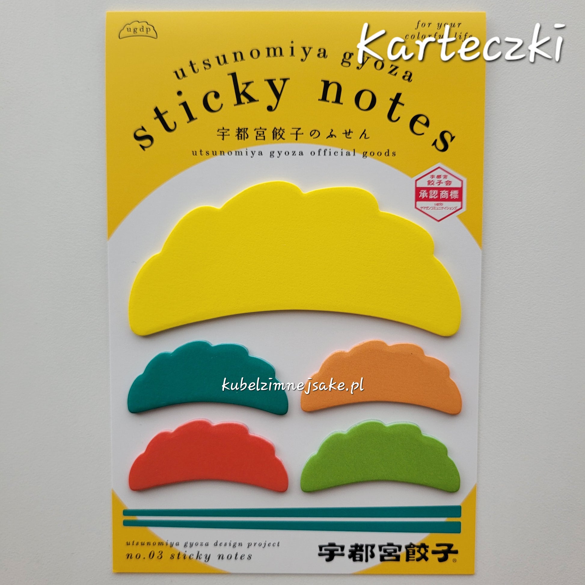 Artykuły papiernicze z motywem japońskiego smażonego pierożka gyoza, specjalności miasta Utsunomiya w Prefekturze Tochigi.