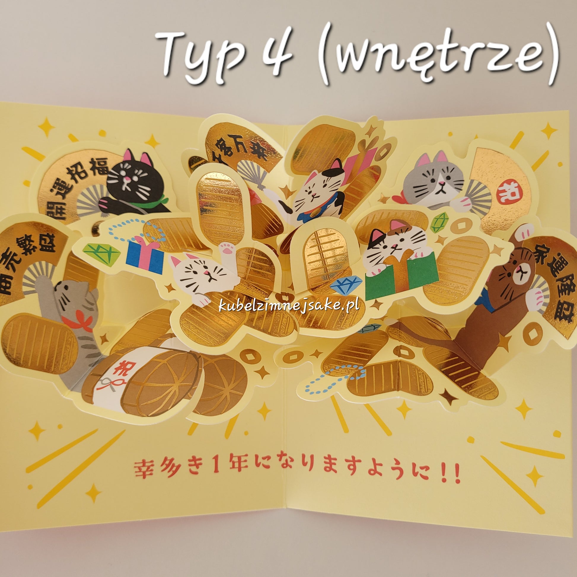 Typ 4: Rozkładana kartka z popularnym w japońskich legendach i popkulturze kotkiem maneki neko, przynoszącym szczęście i chroniącym od niebezpieczeństw.