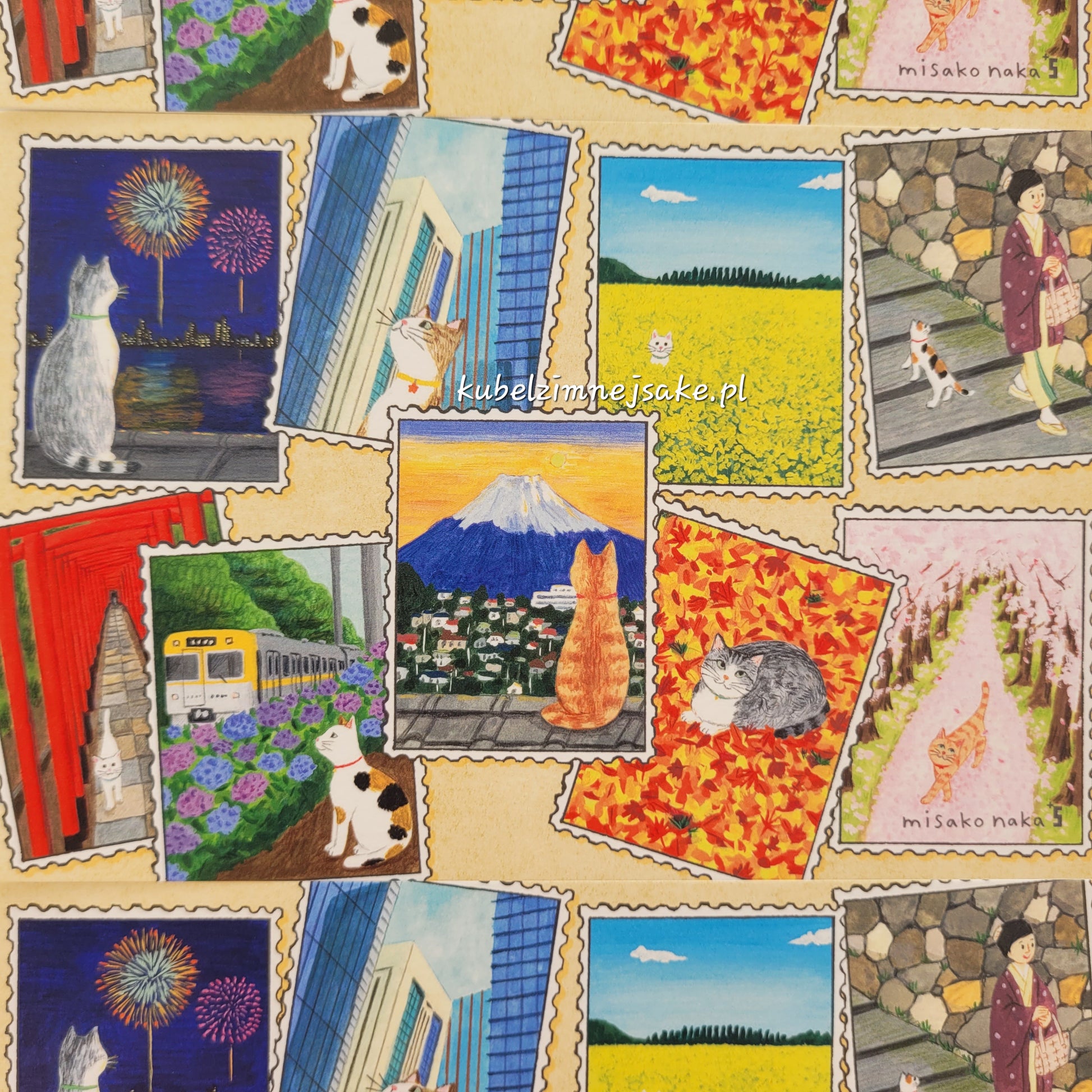 Pocztówka z kotami wysyłana do adresata bezpośrednio z Japonii, opatrzona jednym z wyjątkowych znaczków Japan Post.