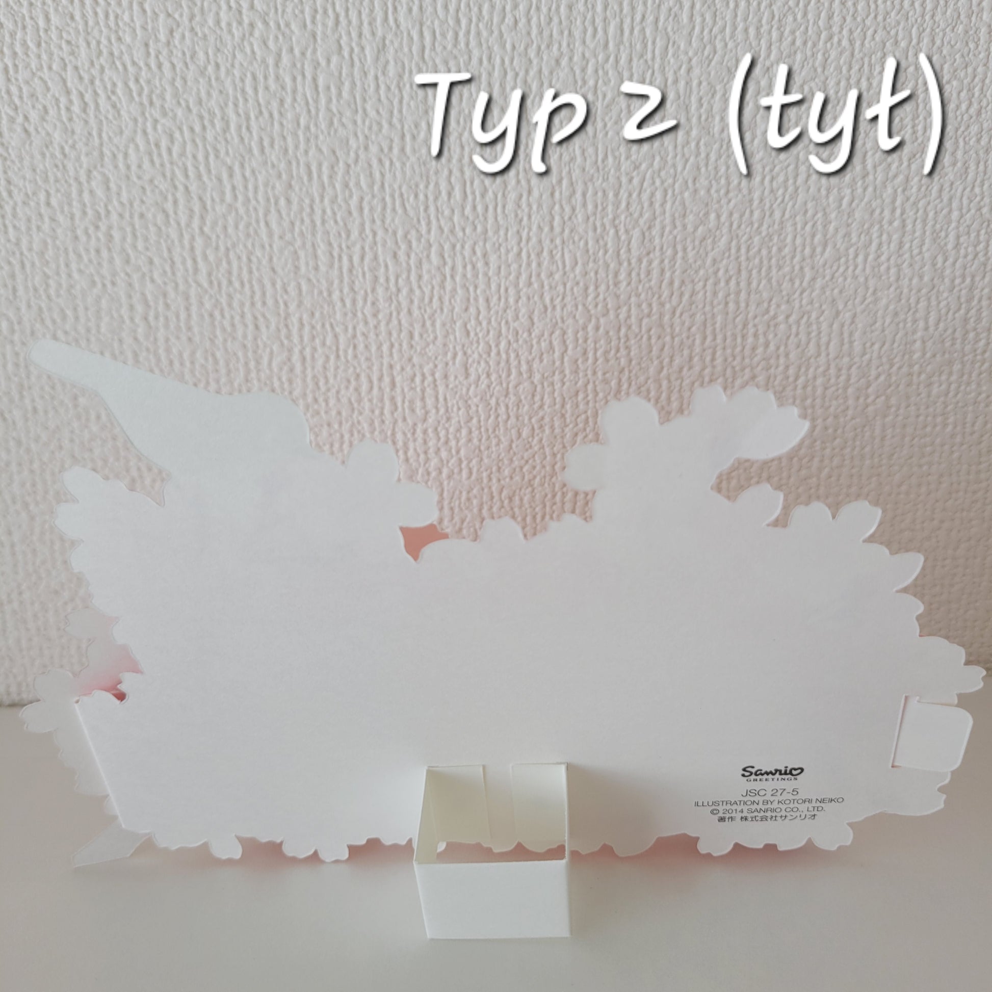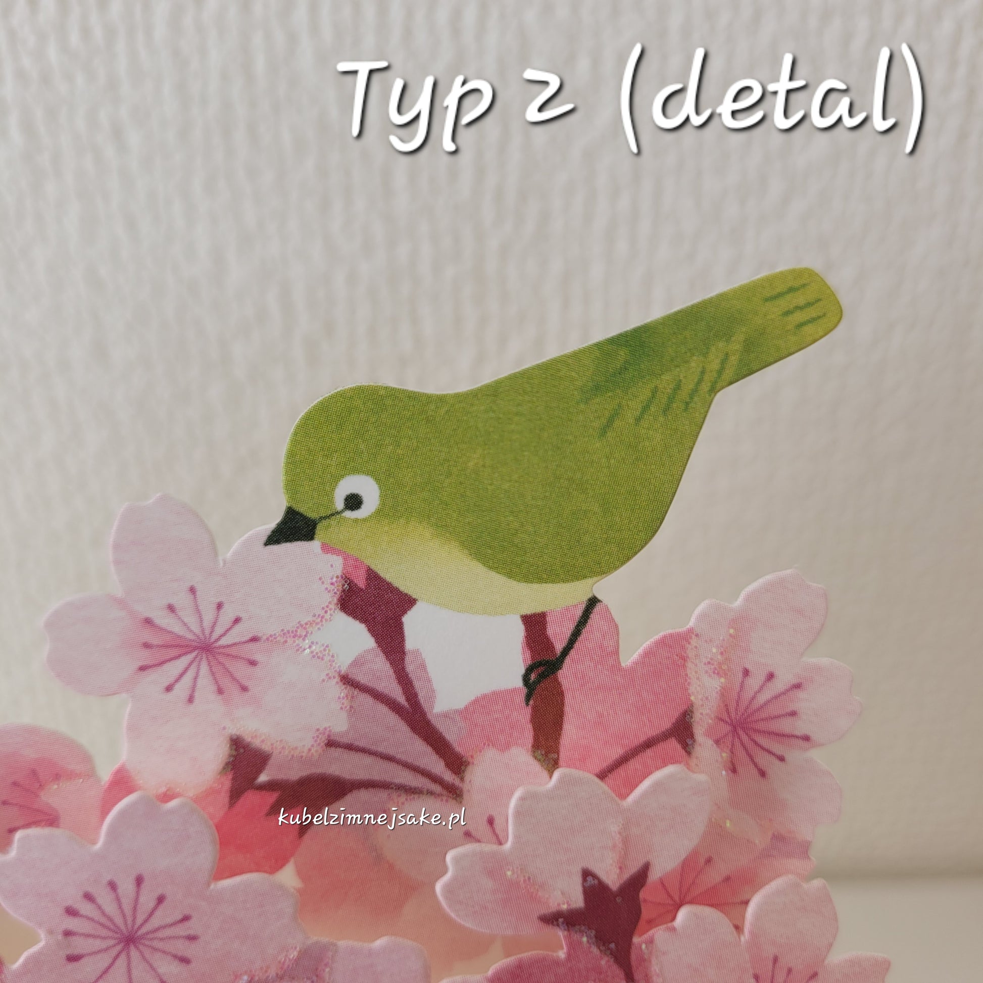 Typ 2: Kartka rozkładająca się w stojącą ozdobę w kształcię gałązek kwitnącego drzewa wiśniowego z ptaszkiem uguisu (wierzbownikiem japońskim) symbolizującym wiosnę.