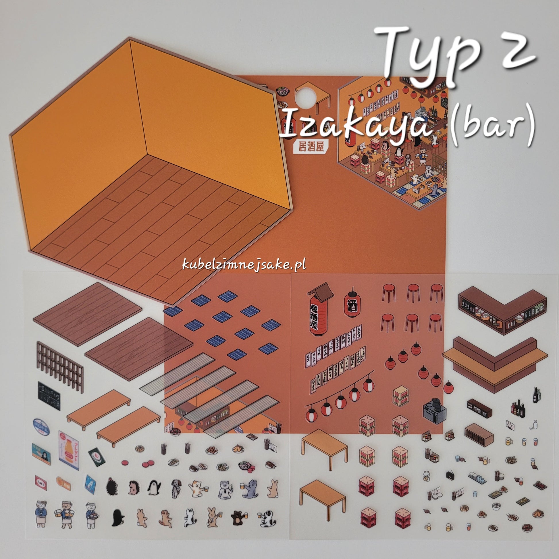 Stwórz swoje własne miniaturki przedstawiające codzienne scenki z Japonii- festiwal matsuri, bar/restauracja izakaya, czy sklep conbini. Każdy zestaw zawiera szablon tworzący tło scenki na którym wyklejamy meble, postaci, jedzenie oraz inne elementy. Kompozycja sprawia, że papier wygląda trójwymiarowo, a po wyklejeniu tworzy urocze dzieło w stylu dioramy. Dioramę można stworzyć według własnej fantazji lub kierując się dołączonym do zestawu wzorem wyklejania. Żeby ułatwić sobie wyklejanie, warto użyć pincetki.