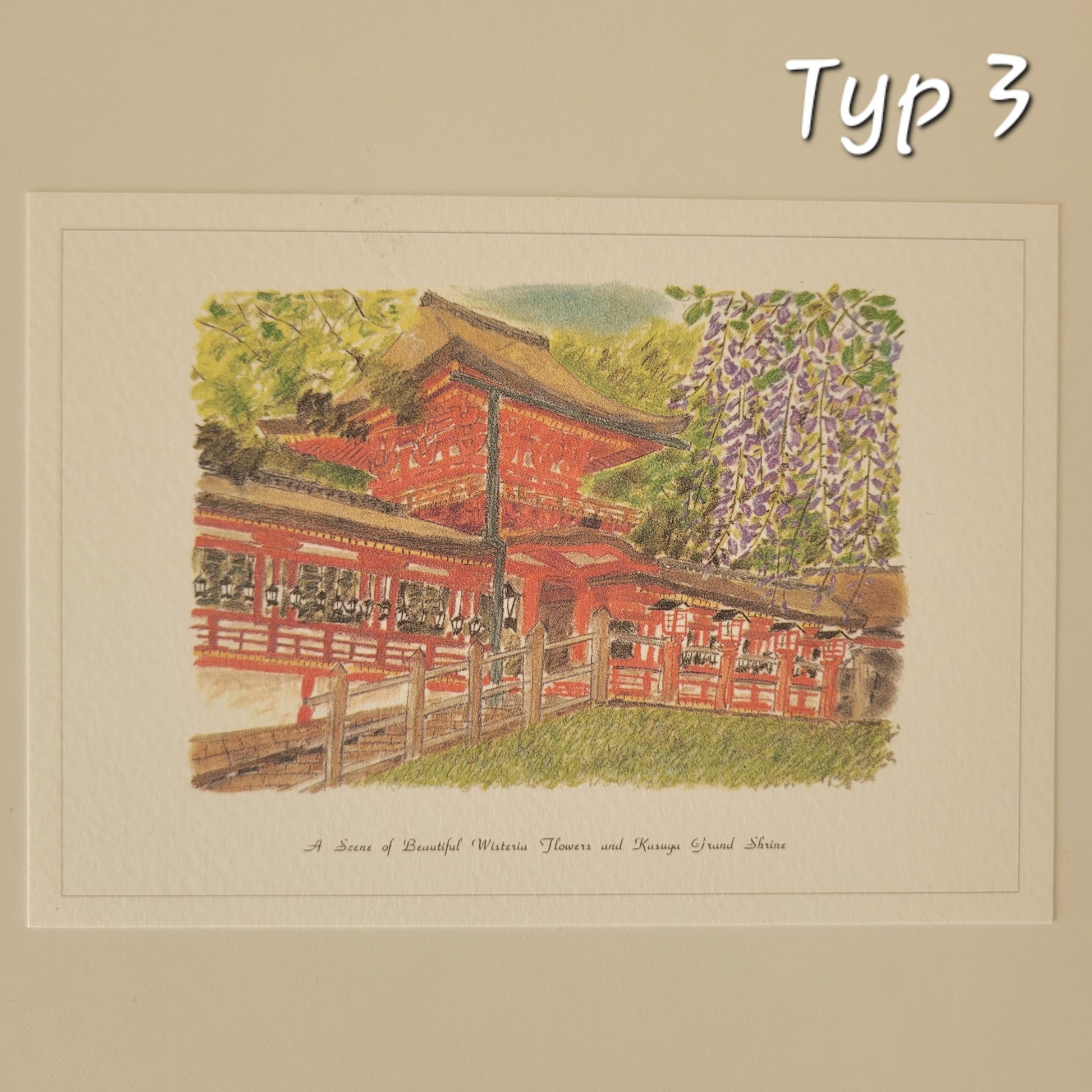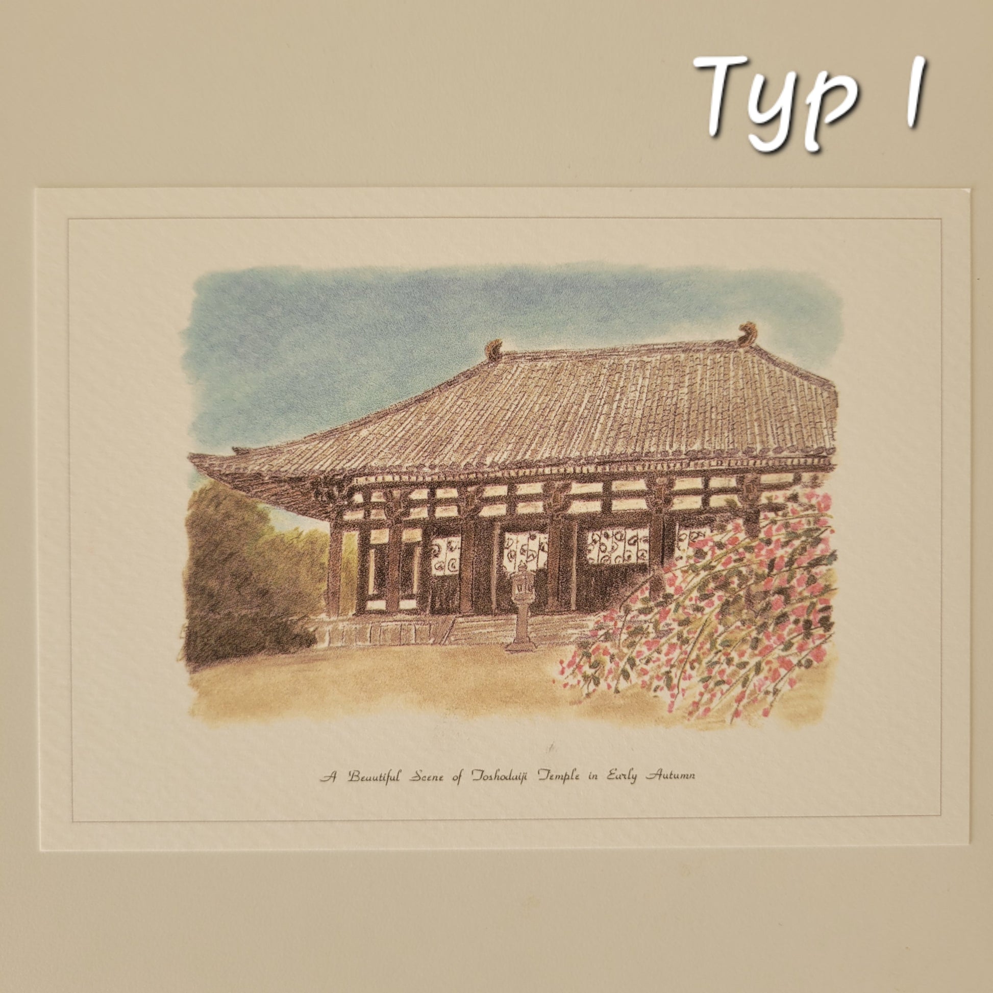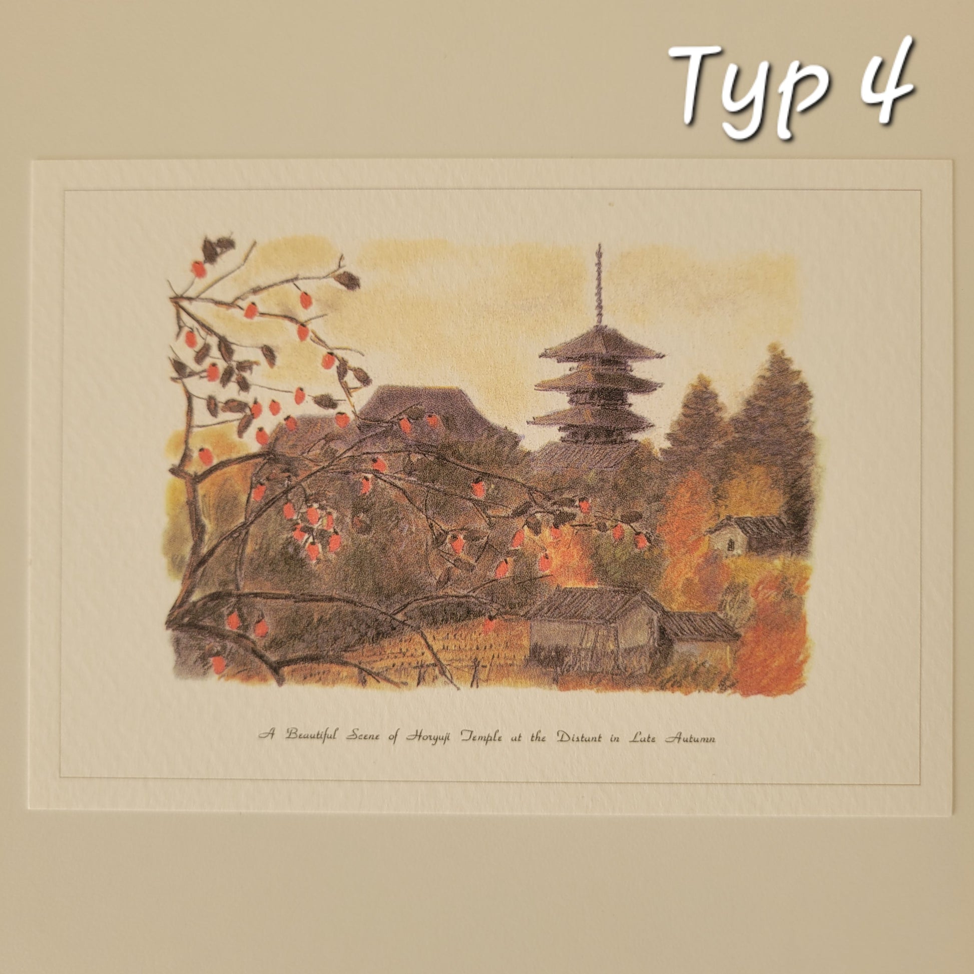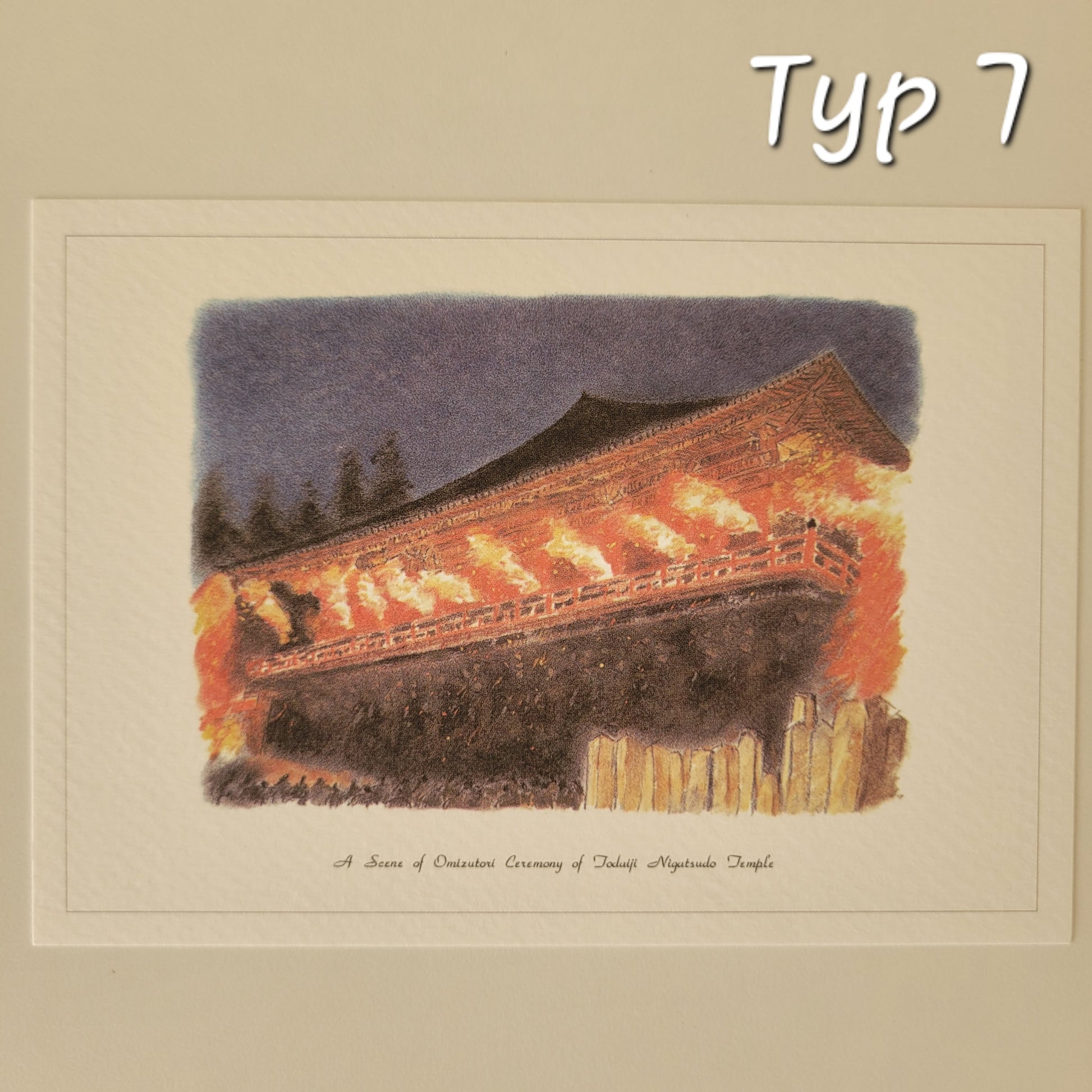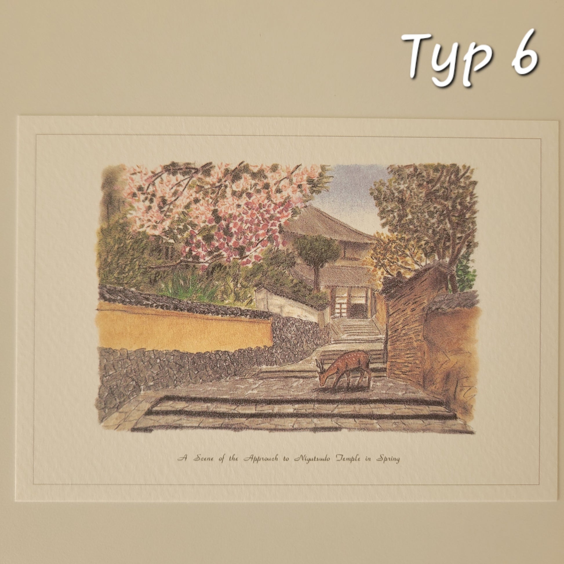 Pocztówki z serii Romantic Nara, przedstawiające krajobrazy, zabytki, oraz tradycje z Prefektury Nara, znanej z jelonków w Nara Park. Każda pocztówka opatrzona jest piękną pamiątkową pieczęcią z Muzeum Etnografii w Expo 90' Commemorative Park w Osace.