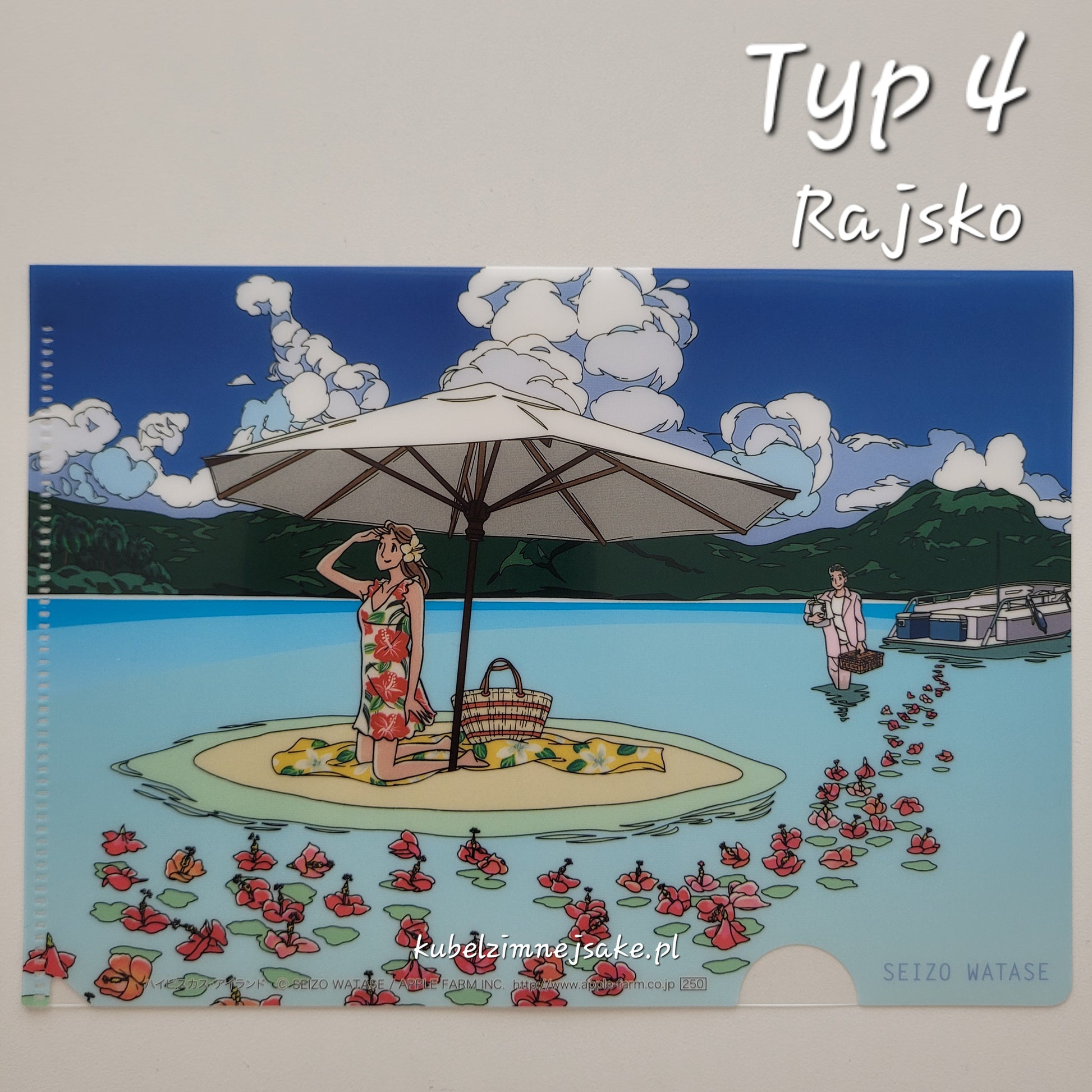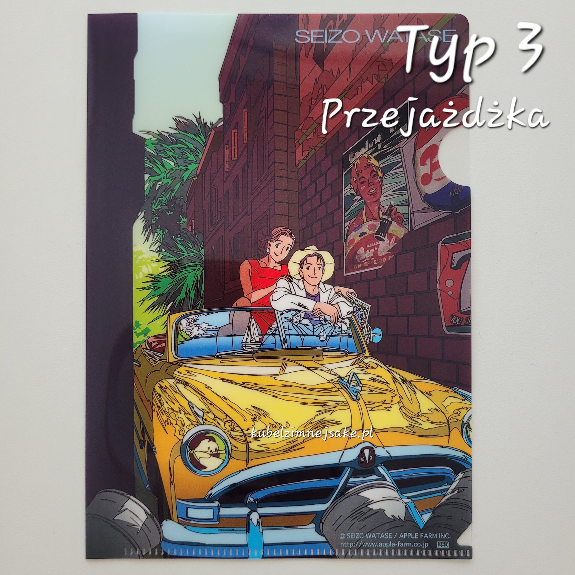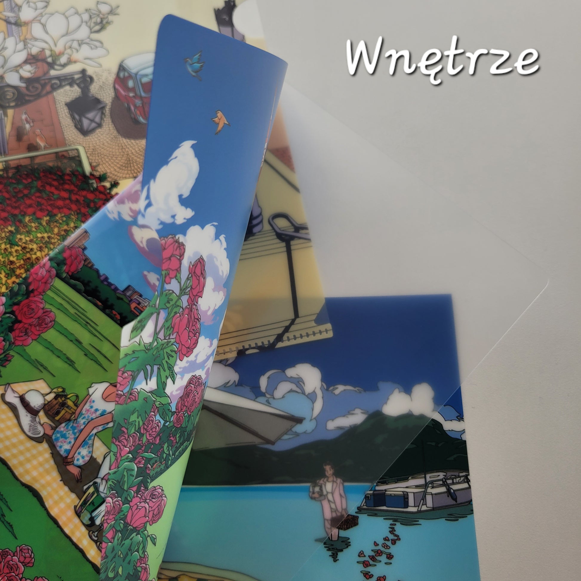 Plastikowy folder na dokumenty w rozmiarze A5 z ilustracją autorstwa japońskiego artysty Seizo Watase. Mieści zgięte na pół kartki A4.