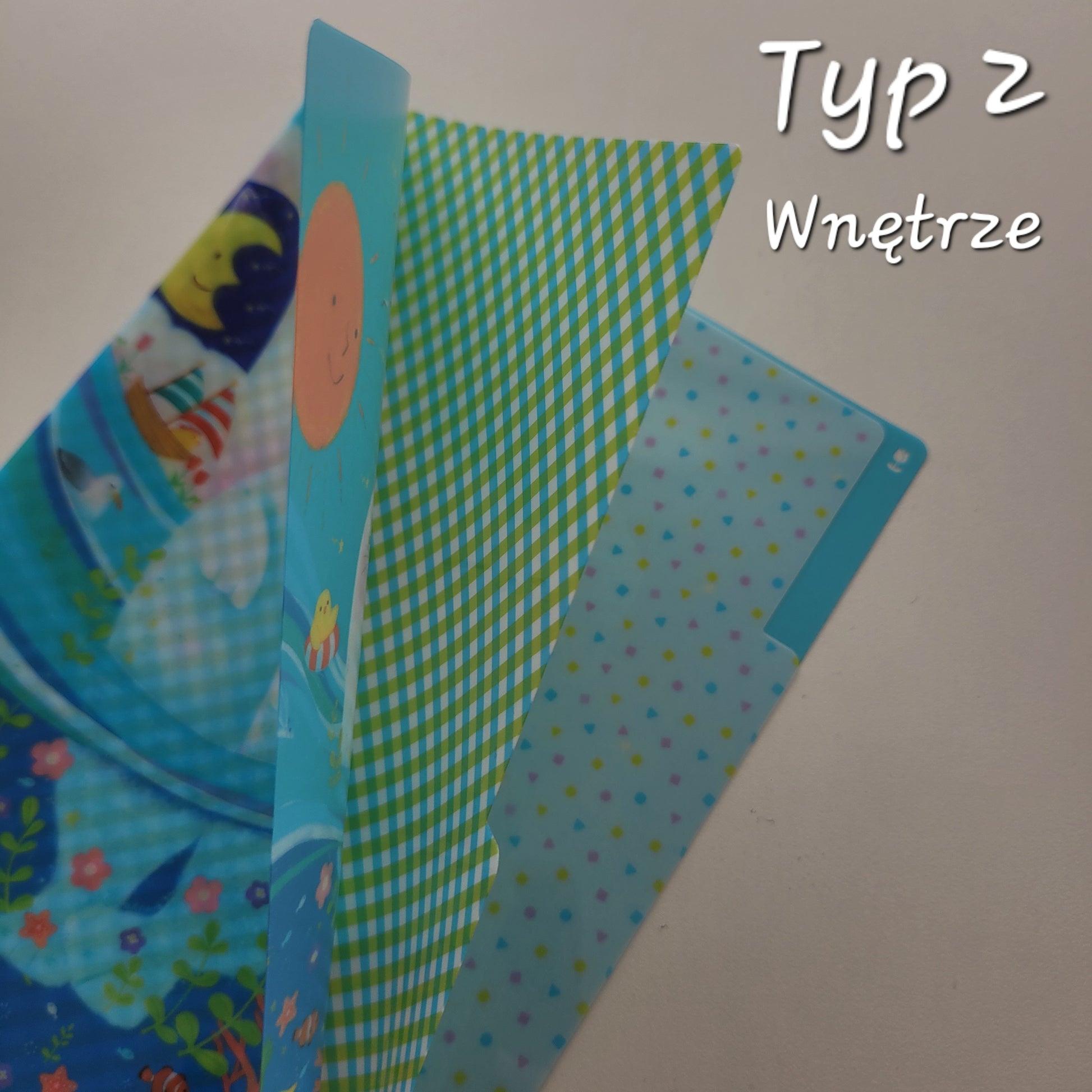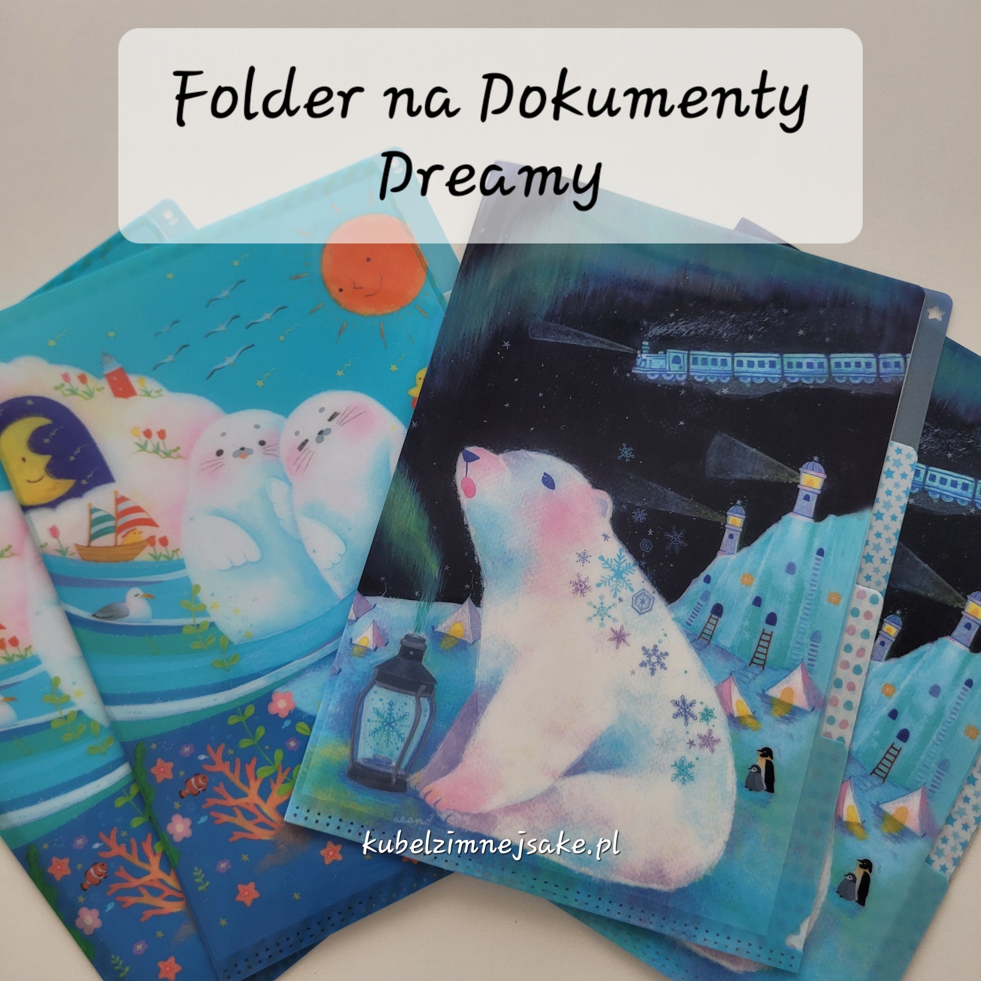 Plastikowy folder na dokumenty Dreamy w rozmiarze A5 z trzema ozdobnymi przegródkami. Mieści zgięte na pół kartki A4.