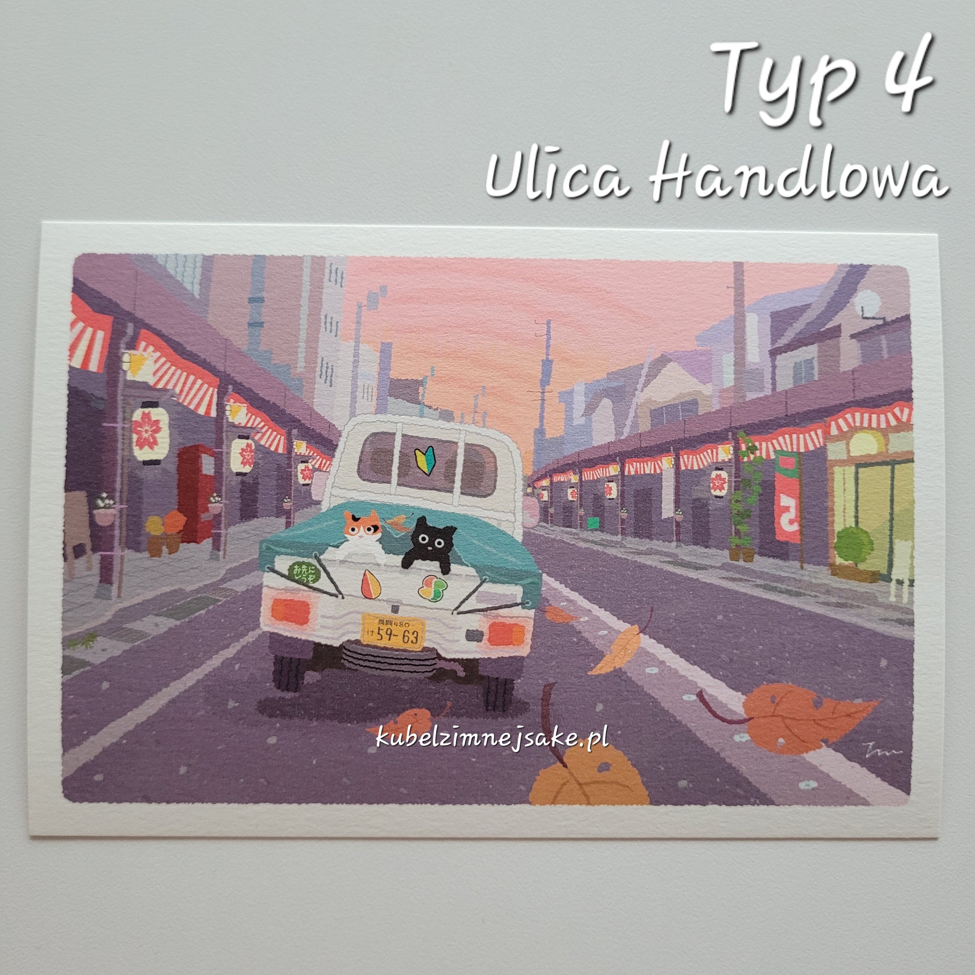 Jesienne pocztówki z popularnej serii Koty w Podróży przedstawiające scenki z japońskiej prowincji.