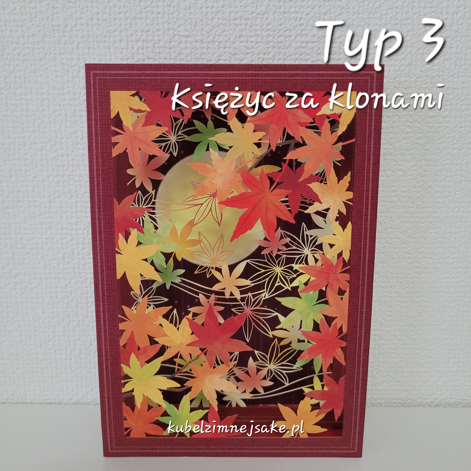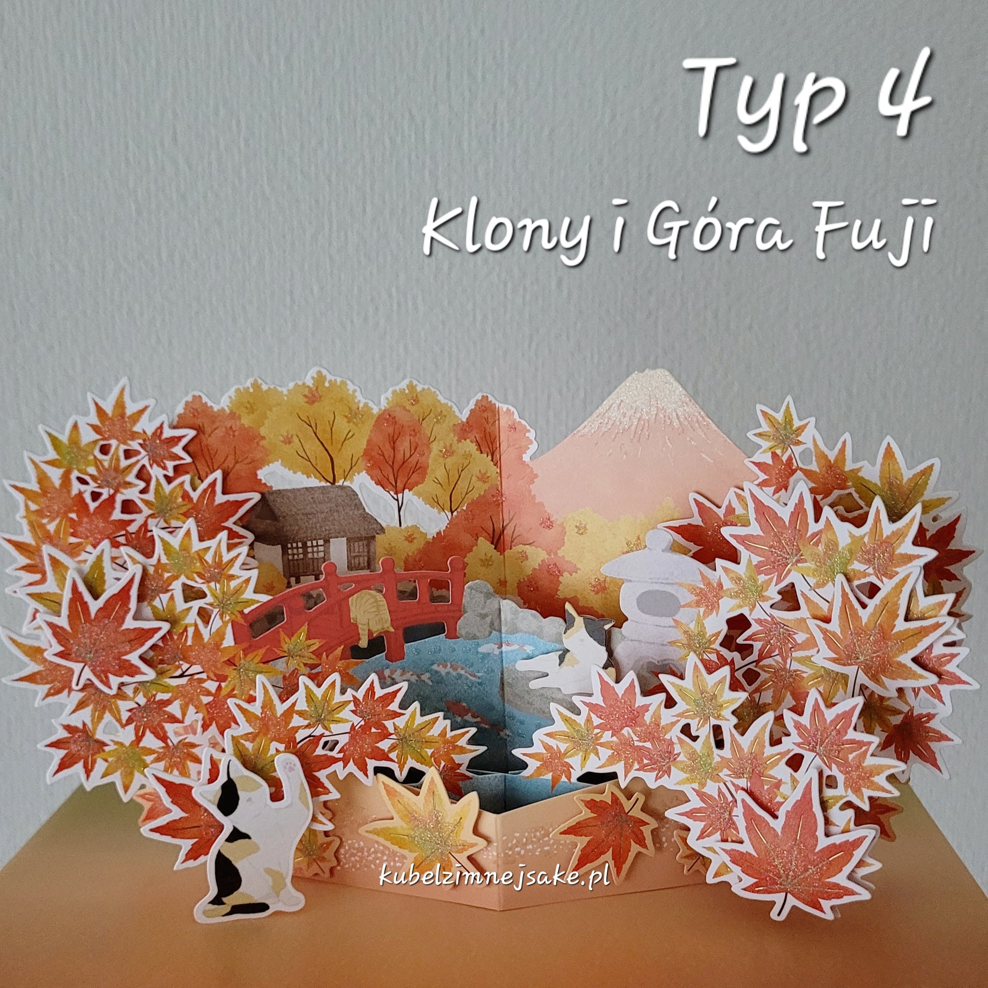 Rozkładane kartki sezonowe z motywami japońskiej jesieni. Cztery wzory do wyboru. Na tyle każdej kartki jest miejsce do wypisania życzeń. Sprawdzi się jako kartka urodzinowa dla urodzonych między wrześniem a listopadem.