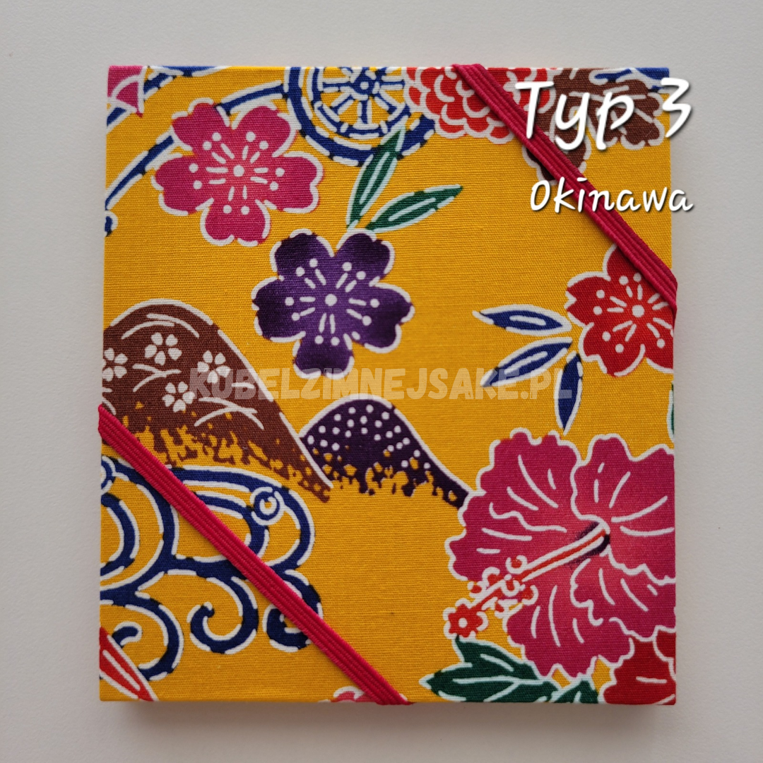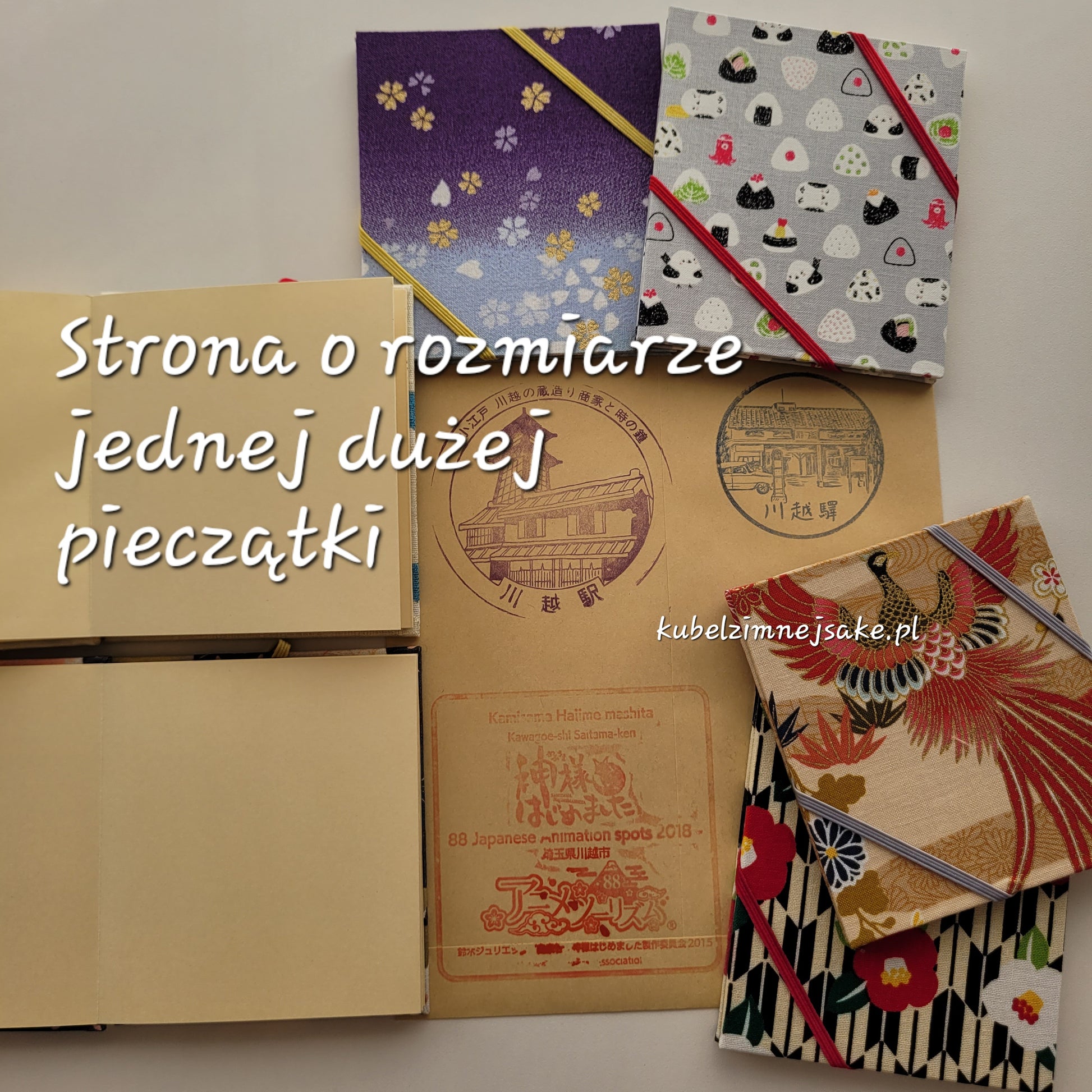 Uroczy ozdobny zeszycik na kolekcję pieczątek z Japonii. Warto się w niego zaopatrzyć przed podróżą do Kraju Kwitnącej Wiśni. Zeszycik otwiera się w harmonijkę, podobnie jak zeszyt do pieczęci świątynnych goshuin-cho. Dzięki temu można efektownie zaprezentować swojką kolekcję stempli przez jedno rozwinięcie zeszytu. Stemple można przybijać z obu stron harmonijki. Gruby papier zapobiega przeciekaniu tuszu. Jedna strona zeszyciku mieści jeden duży lub kilka małych stempli.